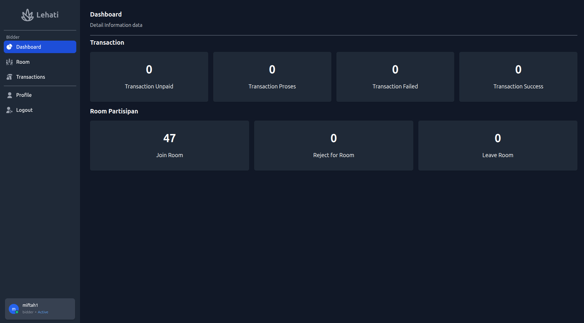 - dashboard petani untuk informasi lelang yang di ikuti dan hasil lelang