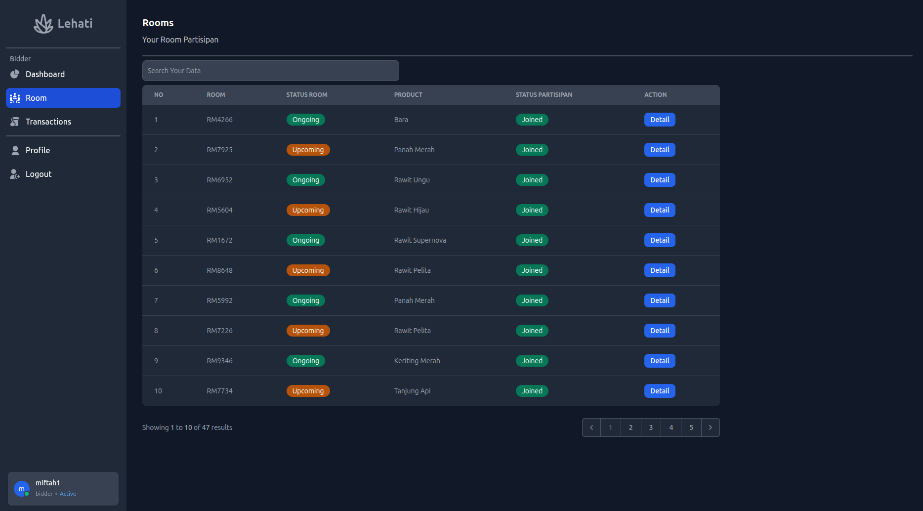 Web Project Lehati ( Lelang Hasil Tani ) aplikasi lelang hasil pertanian yang menghubungkan petani dan pembeli secara online. fitur web aplikasi lelang ini, explore produk, livebidding dan sistem pembayaran sederhana. yang di harapkan aplikasi ini untuk memudahkan petani untuk menjual hasil panen mereka dengan harga terbaik melalui proses lelang yang transparan dan efisien.